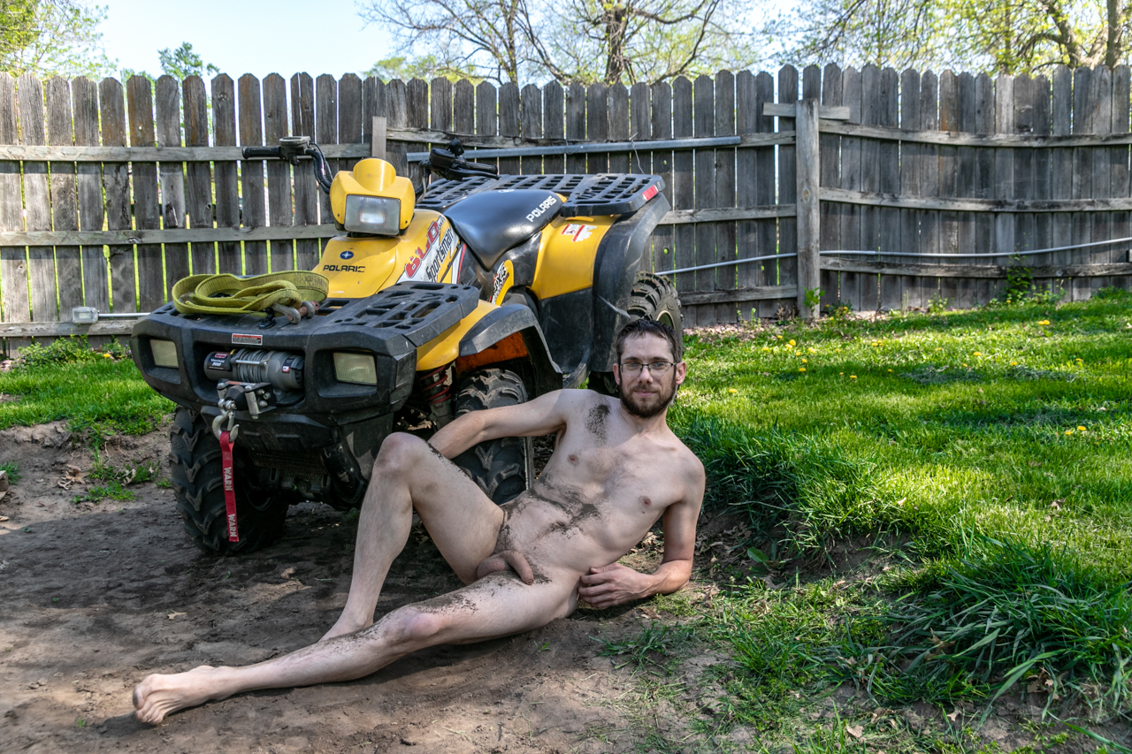 When I’m not socializing or hanging out at nudist resorts I can often be found at home working nude on projects such as replacing this laptop screen or this fourwheeler I am parting out.
